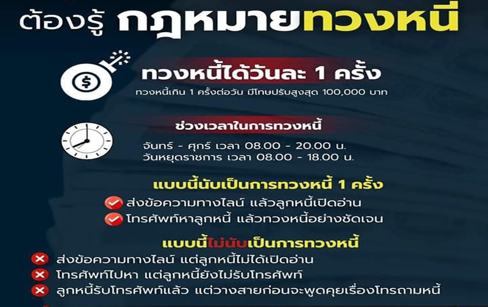 หากทวงหนี้เกิน 1 ครั้งต่อวัน มีโทษปรับสูงสุด 100,000 บาท