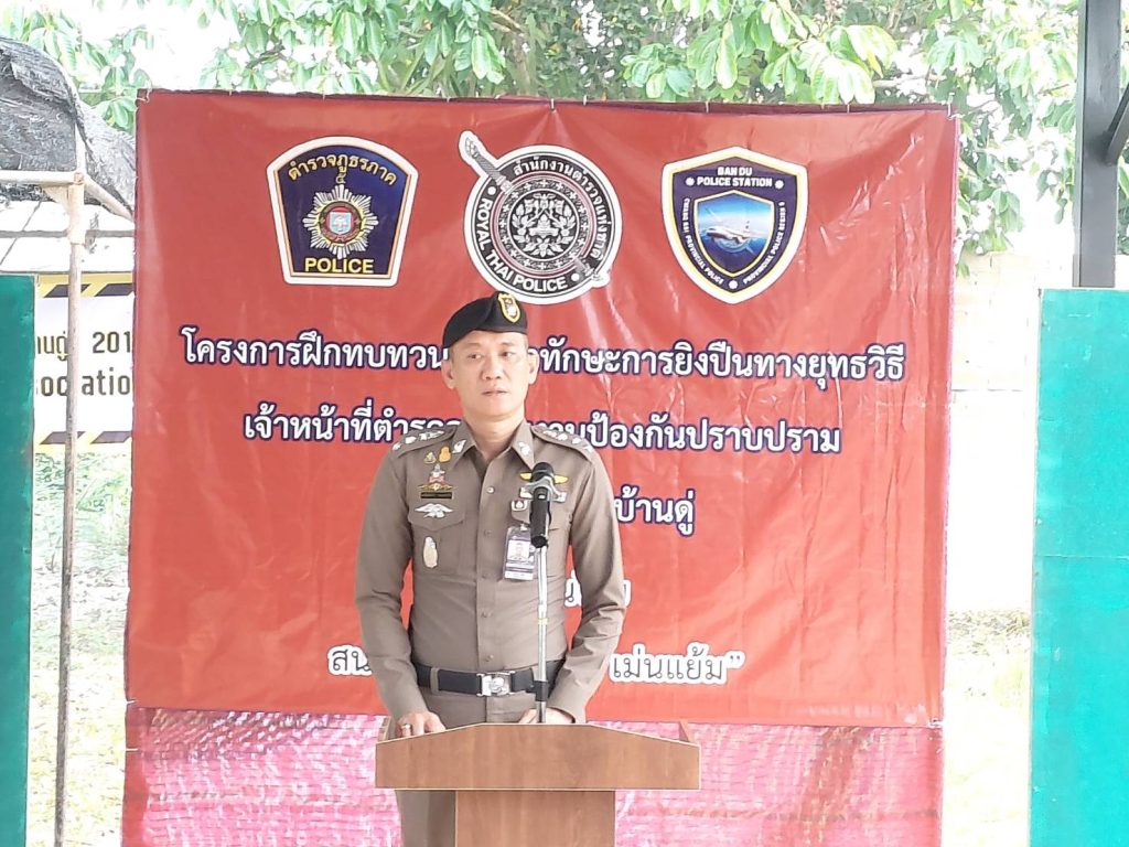 โดยมี พ.ต.อ.อานันท์จักร์ กนกนพวัชร์ ผกก.สภ.บ้านดู่ เป็นประธานในพิธีเปิดโครงการ ณ สนามยิงปืน “สุวิทย์ เม่นแย้ม” ต.บ้านดู่ อ.เมืองเชียงราย จ.เชียงราย