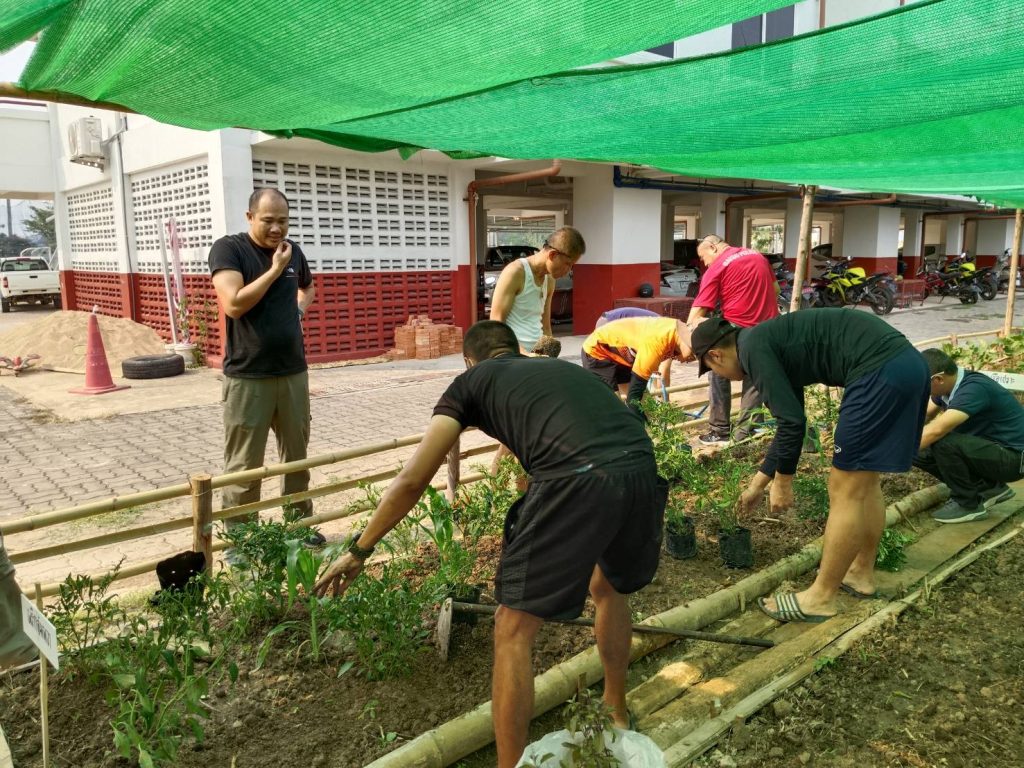 ร่วมกิจกรรมปลูกผัก ตามโครงการเกษตรอินทรีย์ “บ้านนั้มีรัก ปลูกผักกินเอง