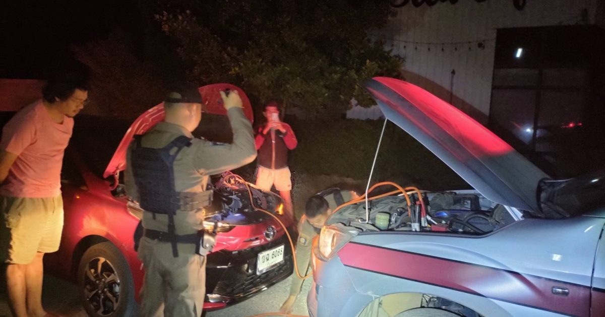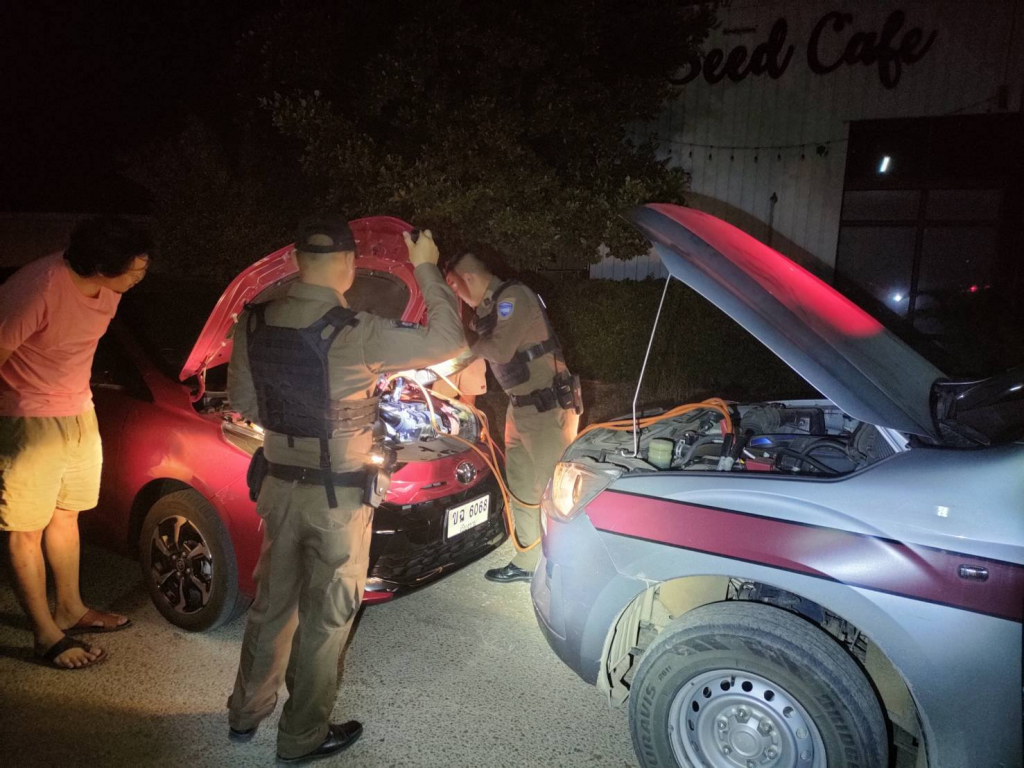 เจ้าหน้าที่สายตรวจ สภ.บ้านดู่ 20/201 และสายตรวจ จยย.ได้รับแจ้งเหตุขอความช่วยเหลือ รถยนต์สตาร์ทไม่ติด บริเวณบ้านป่าไร่