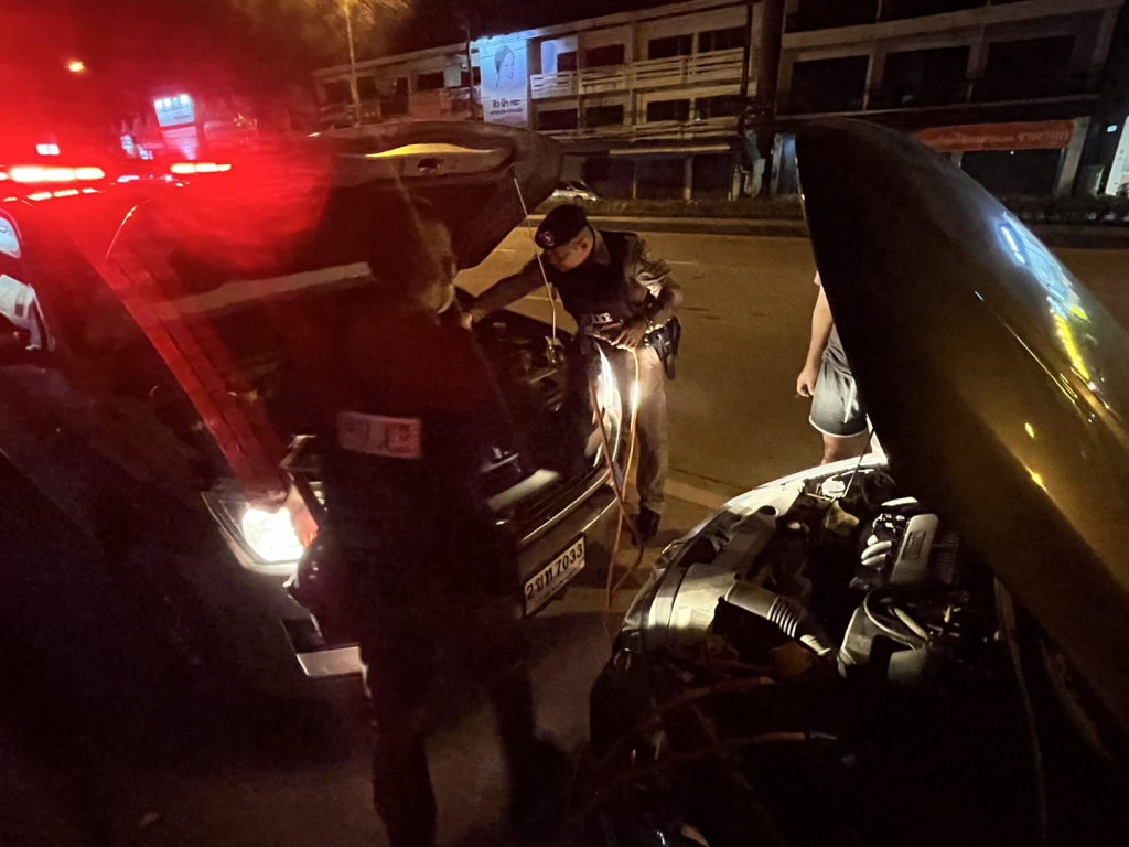 เจ้าหน้าที่ตำรวจพร้อมสายตรวจจักรยานยนต์ ได้รับแจ้งเหตุขอความช่วยเหลือรถสตาร์ทไม่ติดบริเวณหน้าโยมิ จึงได้ให้การช่วยเหลือและทำการพ่วงแบตสตาร์ทติดเป็นที่เรียบร้อย