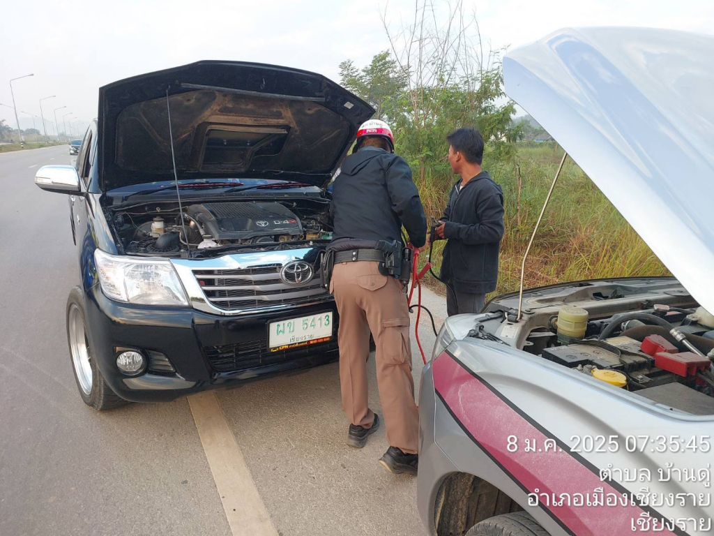 สายตรวจ สภ.บ้านดู่ช่วยเหลือประชาชนรถยนต์แบตเตอรี่หมด