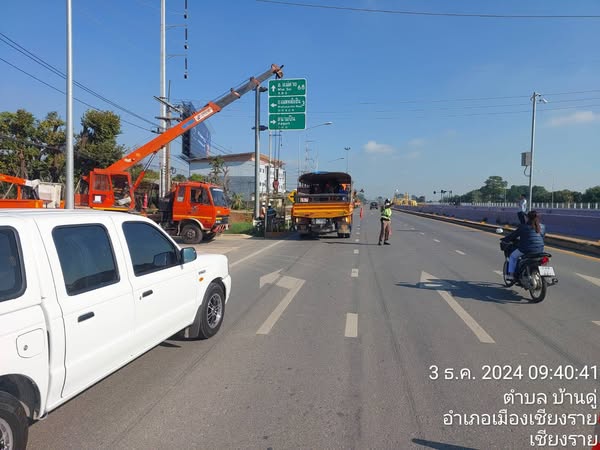 งานจราจร สภ.บ้านดู่ ประชาสัมพันธ์ผู้ใช้รถและถนนเส้นบายพาสตะวันออกแยกสนามบิน วันที่ 3 ธันวาคม 2567 ขณ