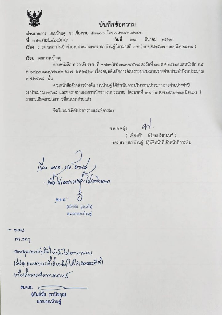 รายงานผลการใช้จ่ายงบประมาณประจำปี 2568