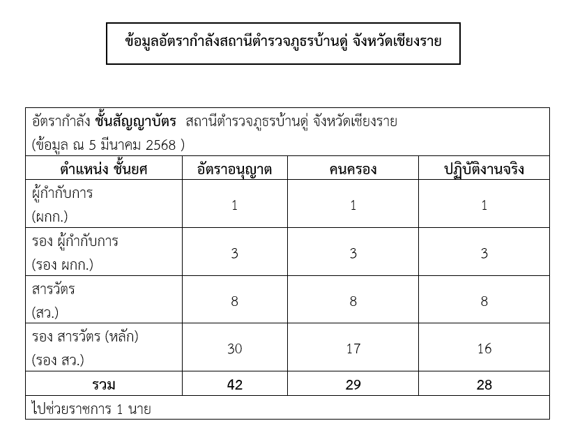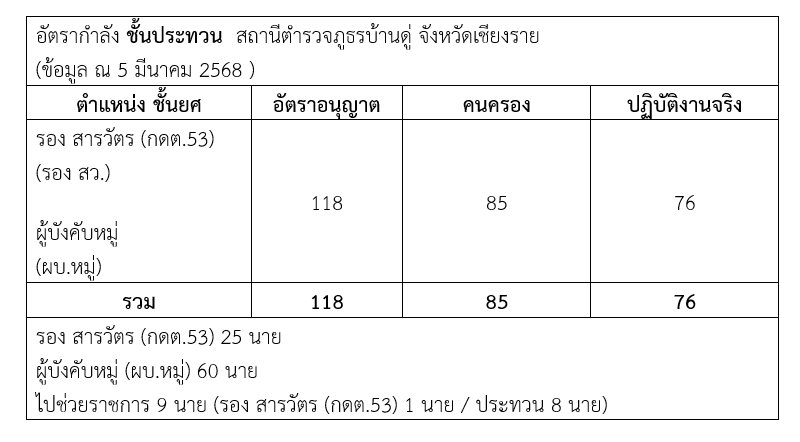 อัตรากำลังของสถานีตำรวจภูธรบ้านดู่ จังหวัดเชียงราย